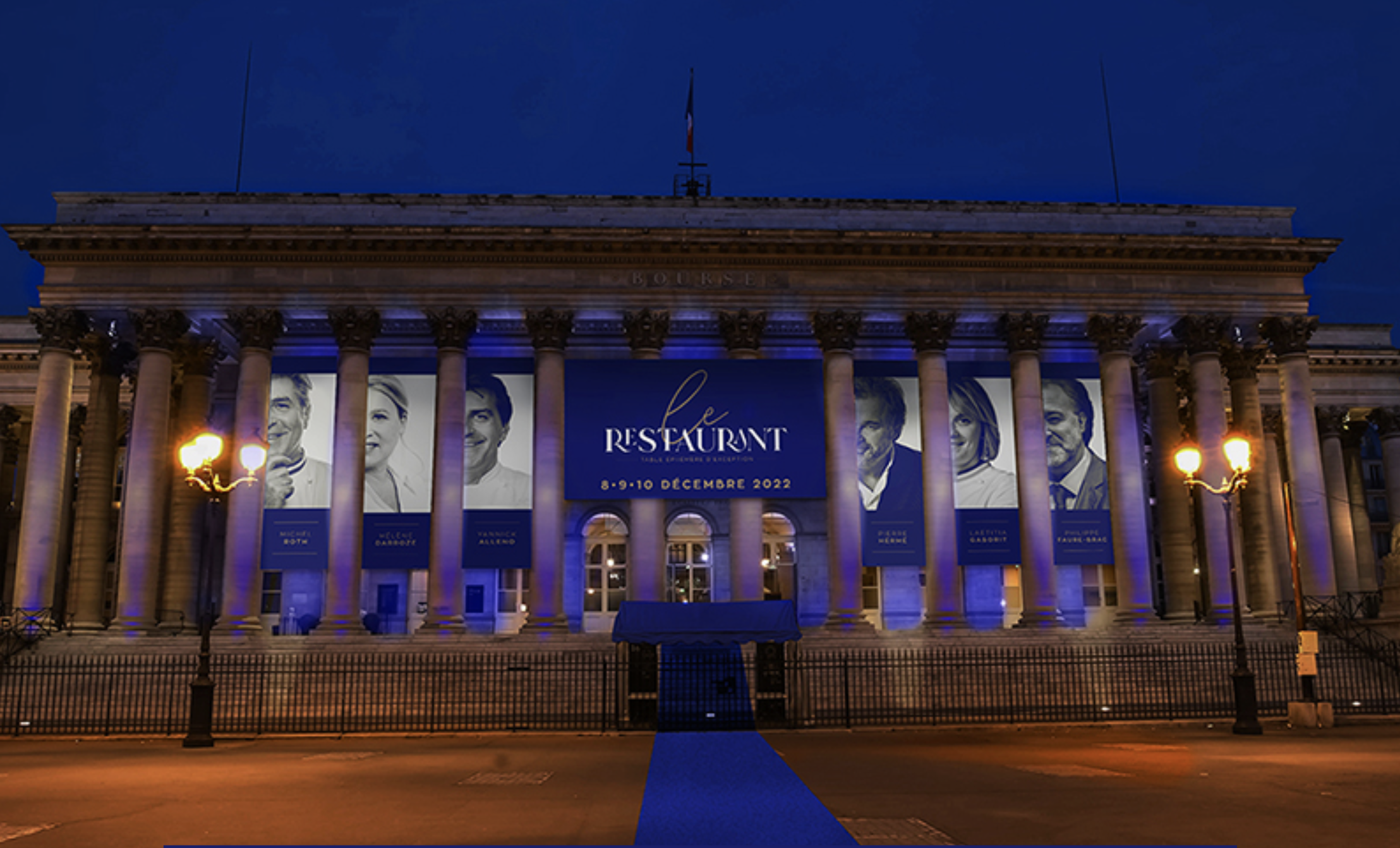 Reconnu comme le plus grand restaurant gastronomique éphémère dans la capitale, Le Restaurant s’installe dans l’une des principales scènes événementielles parisiennes. Le Palais Brongniart, surplombant la place de la Bourse, ouvrira les portes de sa nef aux professionnels autour d’une expérience gourmande hors du temps. Bâtie d'une architecture classique dressée d’une hauteur sous verrière de 28 mètres, la nef authentique de 584 m2 vantera les mérites de la cuisine traditionnelle française. Un événement Made in France dont la carte a été pensée par les plus grands noms du secteur : Hélène Darroze, Yannick Alléno, Michel Roth, Laetitia Gaborit, Pierre Hermé et Philippe Faure-Brac. Seront également de la partie les prestigieuses maisons et institutions de cuisine de l’hexagone, dont Ferrandi et Wineted. Rien que ça. Pour célébrer gracieusement les fêtes de fin d’année, Le Restaurant vous invite autour d’un parcours culinaire en plusieurs étapes.
