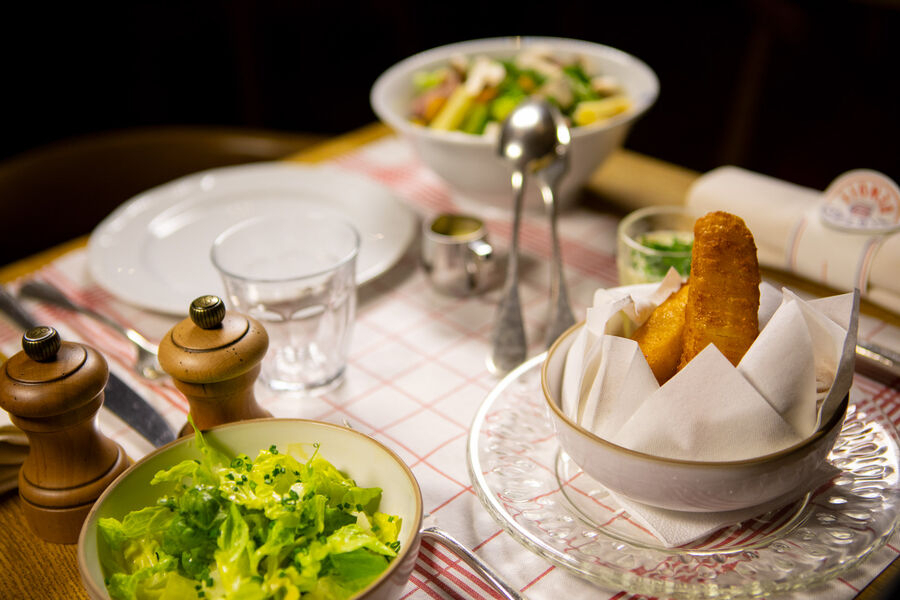 A la carte, des recettes typiques du savoir-faire à la française : escargots, pâté en croute, blanquette de veau, volaille au thym, baba au rhum…